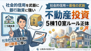 公務員の副業で唯一「法律で認められた」不動産投資を徹底解説。5棟10室ルールの詳細から、年収500万円の壁、職場にバレないための税務対策まで。公務員最強の武器「社会的信用」を活かして、役所に依存しない安定した家賃収入を作るための全手法を公開。